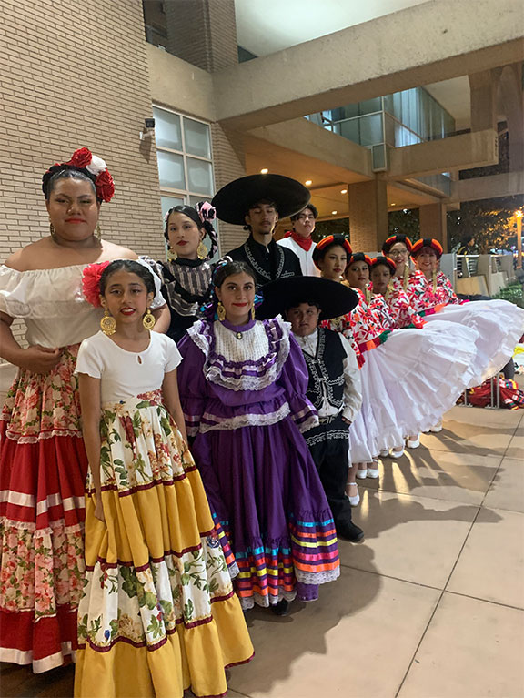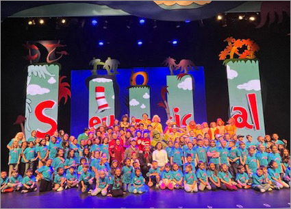 Elementary students collaborating with RCC performers in a live stage production.